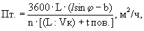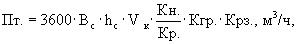 где Q - емкость ковша, л (принимается по паспорту); t - шаг ковшей, м (принимается по паспорту); Vк. - скорость движения ковшовой цепи, м/с (принимается по паспорту); Кн. - коэффициент наполнения ковша разрыхленным грунтом (определяется по табл. 1); Кр. - коэффициент разрыхления грунта (определяется по табл. 1); Кгр. - коэффициент учета влияния рода грунта - для грунтов I гр. - 1, II гр. - 0,87, III гр. - 0,67, IV гр. - 0,5; Крз. - коэффициент влияния способа разработки грунта при работе в отвал Крз. = 1, при работе в транспорт Крз. = 0,8; б) с бесковшовым (скребковым) рабочим органом где Вс - ширина скребка, м (принимается по паспорту); hc - высота скребка, м (принимается по паспорту); Vк - скорость движения ковшовой цепи, м/с (принимается по паспорту); Кн. - коэффициент наполнения определяется в зависимости от угла наклона рабочей цепи к горизонту - 25° - 0,74; 38° - 0,58; 55° - 0,32; Кр. - коэффициент разрыхления грунта (определяется по табл. 1); Кгр. и Крз. - аналогично цепному экскаватору; в) роторные