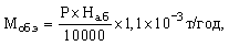 где Qв - расход нефтесодержащих стоков, м3/год; Сисх - концентрация нефтепродуктов в исходной воде, мг/л; Соч - концентрация нефтепродуктов в очищенной воде, мг/л; Р - обводненность нефтешлама, %; g - плотность нефтешлама, г/см3. Данные для расчета принимаются по результатам анализов на содержание нефтепродуктов в воде перед и после установки мойки автотранспорта, 5.11 Ветошь замасленная Ветошь замасленная образуется при обслуживании и ремонте основного и вспомогательного оборудования, станочного парка и автотранспортной техники. Объем образования этого вида отходов по автотранспортной технике определяется в соответствии с [4] по формуле