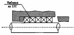 Рис. 5.1. 5.3. Диаметр крепежа выбирается из условия восприятия нагрузок от давления рабочей среды дополнительной нагрузкой от обжатия сальникового уплотнения удельным давлением 20 кгс/см2, 30 кгс/см2 и 50 кгс/см2, соответственно, при давлении рабочей среды до 6 кгс/см2, до 10 кгс/см2 и до 25 кгс/см2. 5.4. 3ащитные втулки (рубашки) вала изготавливаются из стали 40X13, стали 45 с объемной закалкой или стали 20 с наплавкой напылением твердым сплавом. Наружная рабочая поверхность рубашки не должна иметь рисок, трещин, раковин. Ее шероховатость должна соответствовать Ra=1,0 мкм при окружной скорости вала до 12 м/сек, Ra=0,5 мкм при окружной скорости более 12 м/сек. 6. Требования к установке сальниковых уплотнений из ТРГ6.1. Поставка уплотнений из ТРГ сопровождается листом комплектации, в котором указывается тип набивки, а также количество и последовательность установки колец. Комплекты устанавливаются в соответствии с листами комплектации. 6.2. Перед установкой сальниковых уплотнений необходимо: - очистить сальниковую камеру от старой набивки; - проверить состояние вала (рубашки), сальниковой камеры, грундбуксы; при необходимости удалить заусенцы, раковины и шероховатости; проточить вал (рубашку) до ремонтного размера, с последующей шлифовкой; - проверить точность расположения вала в
