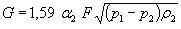 где G - пропускная способность, кг/ч; р1 - максимальное избыточное давление перед клапаном при его срабатывании МПа, (кгс/см2); р2 - максимальное избыточное давление за клапаном, МПа (кгс/см2); F - площадь проходного сечения клапана, равная наименьшей площади сечения в проточной части, мм2;