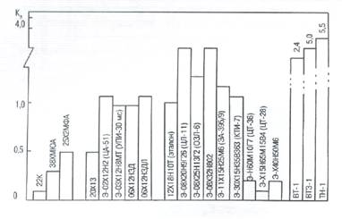 Так как одной из основных причин эрозионного разрушения проточной части арматуры является кавитационное воздействие потока среды, каждый регулирующий орган должен проверяться на возможность возникновения кавитации в процессе дросселирования в нем рабочей среды. Однако при этом Кс как критерий кавитации не зависит от свойства материалов элементов проточной части. Поэтому наряду с перепадом давлений, при котором возникает кавитация, ∆ркав, определяемым по коэффициенту начала кавитации, важное значение приобретает перепад давлений ∆рэр, при превышении которого возможен эрозионный износ материалов проточной части. Значение ∆рэр (МПа) рекомендуется оценивать по эмпирической формуле ∆рэр = 4,0 Кh. Значения Кh для некоторых сталей и наплавочных сплавов, применяемых для изготовления деталей проточной части дроссельно-регулирующей арматуры, приведены в табл. 4 и на рисунке.