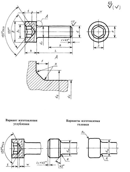 распространяется на винты с цилиндрической головкой и шестигранным углублением
