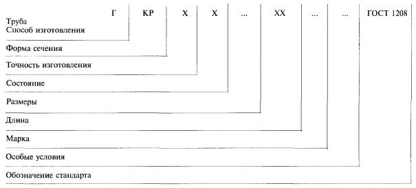 при следующих сокращениях: способ изготовления: прессованная - Г форма сечения: круглая - КР длина: немерная - НД кратная мерной - КД особые условия: трубы для изготовления сепараторов подшипников качения - С Примеры условных обозначений труб: Труба наружным диаметром 65 мм с толщиной стенки 7,5 мм, длиной 3000 мм из бронзы марки БрАЖН 10-4-4: Труба ГКРХХ 65´7,5´3000 БрАЖН 10-4-4 ГОСТ 1208-90 Труба наружным диаметром 205 мм с толщиной стенки 22,5 мм, немерной длины из бронзы марки БрАЖМц 10-3-1,5 для изготовления сепараторов подшипников качения: Труба ГКРХХ 205´22,5 НД БрАЖМц 10-3-1,5 С ГОСТ 1208-90 1.3. Характеристики 1.3.1. Базовое исполнение 1.3.1.1. Наружная и внутренняя поверхности труб должны быть свободными от загрязнений, затрудняющими осмотр, без раковин, трещин, плен, расслоений и пузырей. Допускаются отдельные поверхностные дефекты, вмятины, мелкие риски и следы зачистки местных дефектов, если они не выводят трубы при контрольной зачистке за предельные отклонения по размерам. Допускаются на поверхности труб кольцеватость и цвета побежалости. 1.3.1.2. Металл труб должен быть без внутренних дефектов в виде неметаллических включений, раковин, пресс-утяжин, расслоений и других дефектов. 1.3.1.3. Трубы должны быть обрезаны и не должны иметь значительных заусенцев. Косина реза не должна превышать в миллиметрах: 2 - для труб наружным диаметром до 50 мм; 4 » » » » св. 50 до 100 мм; 5 » » » » св. 100 до 170 мм; 7 » » » » св. 170 мм. 1.3.1.4. Овальность и разностенность не должны выводить размеры труб за предельные отклонения по наружному диаметру и толщине стенки. 1.3.1.5. Кривизна на 1 м длины труб не должна превышать указанную в табл. 3. Таблица 3 мм