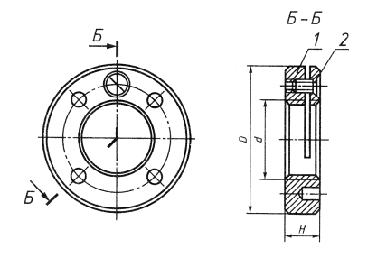 Пример условного обозначения гайки с контрящим винтом диаметром резьбы d = M12 × 1,25: Гайка 7003-0131 ГОСТ 12460-67 (Измененная редакция, Изм. № 1, 2). 1a. Конструкция и размеры гайки (деталь 2) должны соответствовать черт. 2 и табл. 2.