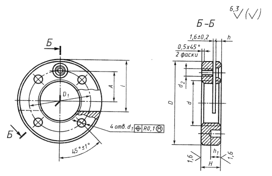 Пример условного обозначения гайки размером d = М12 × 1,25: Гайка 7003-0131/001 ГОСТ 12460-67(Введен дополнительно, Изм. № 2). 2. Материал - сталь марки 45 по ГОСТ 1050-88. Допускается замена на стали других марок с механическими свойствами не ниже, чем у стали марки 45. 3. Твердость - 32,0 . . . 36,5 HRCэ. (Измененная редакция, Изм. № 2). За. Сквозные отверстия под крепежные детали - по ГОСТ 11284-75. За. Опорные поверхности под крепежные детали - по ГОСТ 12876-67. За, 36. (Введены дополнительно, Изм. № 1). 4. Неуказанные предельные