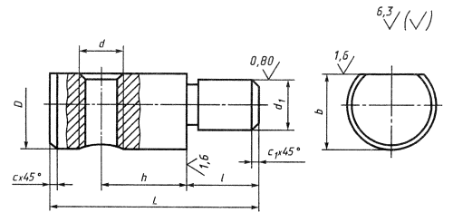Пример условного обозначения упорного штыря размерами d - М4, h = 6 мм: Штырь 7009-0631 ГОСТ 12465-67 (Измененная редакция, Изм. № 2). 2. Материал - сталь марки 45 по ГОСТ 1050-88. Допускается замена на стали других марок с механическими свойствами не ниже, чем у стали марки 45. (Измененная редакция, Изм. № 1). 3. Твердость - 30 ... 34 HRCэ. 4. Неуказанные предельные