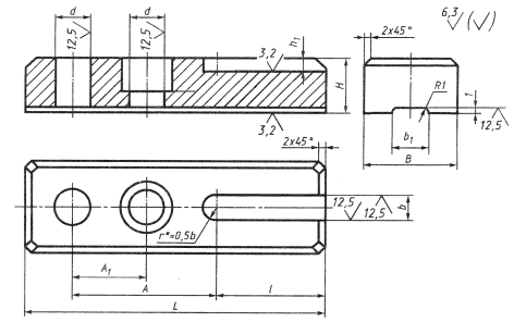 Пример условного обозначения опор под нажимные винты для прихватов под стержень диаметром 12 мм: Опора 7034-0251 ГОСТ 12480-67 (Измененная редакция, Изм. № 1, 2). 2. Материал - сталь марки 45 по ГОСТ 1050. Допускается замена на стали других марок с механическими свойствами не ниже, чем у стали марки 45. 3. Твердость - 36,5...41,5 HRCэ. (Измененная редакция, Изм. № 2). За. Опорные поверхности под крепежные детали - по ГОСТ 12876. (Введен дополнительно, Изм. № 1). 4. Неуказанные предельные