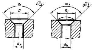 2д. Размеры опорных поверхностей под заклепки с потайной и полупотайной головкой должны соответствовать указанным на черт. 6 и в табл. 6.