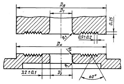 Примечание. Допускается использование приборов с манометрами, имеющими другие пределы измерения, а также приборов с электронными датчиками. (Измененная редакция, Изм. № 1). 2.1.1. Диафрагма, передающая давление на испытуемый образец, должна быть изготовлена из эластичной резины, способной равномерно восстанавливаться после деформации в условиях многократных нагрузок. Материал и форма диафрагмы должны обеспечивать размеры стрелы выпучивания, указанные в табл. 2. 2.1.2. Зажимающее устройство в соответствии с чертежом и табл. 1 должно обеспечивать надежное и равномерное закрепление испытуемого образца без повреждения и полностью исключать его скольжение во время испытания. Зажимающие поверхности прижимных колец должны быть плоскими и параллельными между собой и иметь спиральные или концентрические канавки V-образного сечения, как указано на чертеже. Усилие прижима должно соответствовать значениям, указанным в табл. 2. Для гофрированного картона усилие прижима должно быть таким, чтобы образец не скользил и гладкие слои не деформировались. Для измерения давления в системе прижима должны применяться манометры по ГОСТ 2405. На приборе типа ПГБ для испытания полуфабрикатов и бумаги давление в системе прижима должно быть не менее 2000 кПа, на приборе типа ПГК для испытания картона - не менее 3200 кПа. 2.1.3. Манометры, фиксирующие давление, при котором происходит разрушение образца, должны соответствовать требованиям ГОСТ 2405, класс точности 0,6, и должны быть снабжены контрольными стрелками. Цена деления шкалы манометров для тонких бумаг должна быть не более 10 кПа. 2.1.4. Гидравлическая система прибора должна быть заполнена дистиллированным глицерином по ГОСТ 6824. Скорость подачи жидкости под диафрагму должна быть равномерной и соответствовать приведенной в табл. 2. Пузырьки воздуха в гидравлической системе не допускаются. Автоматическое устройство должно прекращать подачу жидкости в момент разрыва образца. 3. ПОДГОТОВКА К ИСПЫТАНИЮ3.1. Для испытания полуфабрикатов изготовляют по пять отливок: для древесной массы - по ГОСТ 16296, для целлюлозы - по ГОСТ 14363.4. На каждой отливке намечают два места для испытания. 3.2. От листов пробы бумаги и картона произвольно отбирают 10 листов для испытания и из каждого вырезают по два образца, делая пометку на одной и той же стороне всех образцов. Размеры образца должны быть такими, чтобы он перекрывал всю поверхность прижимного кольца. Образцы должны быть без морщин и повреждений, по возможности без водяных знаков. 3.3. Образцы подвергают кондиционированию по ГОСТ 13523. Относительная влажность, температура и время кондиционирования должны быть указаны в стандартах на конкретную продукцию. 4. ПРОВЕДЕНИЕ ИСПЫТАНИЯ4.1. Испытания проводят в тех же атмосферных условиях, при которых проводили кондиционирование образцов. 4.2. Образец помещают на нижнее прижимное кольцо прибора так, чтобы перекрывалась вся поверхность кольца. Закрепляют образец в прижимном устройстве испытуемой стороной вниз и постепенно повышают гидравлическое давление до разрушения образца. Отсчет показаний манометра проводят с точностью до 1 деления шкалы. Измеряемая величина должна находиться в пределах от 25 до 75 % максимального значения шкалы, но не выходя за пределы от 15 до 85 % полной градуировки. Проводят по пять определений на каждой стороне для 