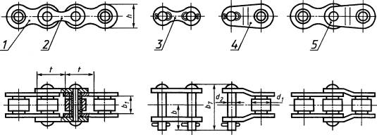 Примечание - Рисунки 1-7 не устанавливают конструкцию цепей, соединительных и переходных звеньев и их деталей. Размеры в миллиметрах