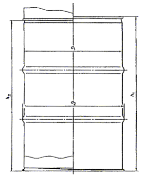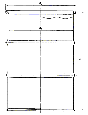 (Новая редакция, Изм. № 2). 1.3. Бочки типа 1А1 изготавливают с одной или двумя сливо-наливными горловинами, расположенными симметрично на верхнем дне. 1.4. На бочках типа 1А1 вместимостью 200 - 230 дм3 допускается устанавливать заливную горловину и пробку по ГОСТ 6247 без якоря и цепочки. (Измененная редакция, Изм. № 2). 1.5. Бочки не являются мерой вместимости для определения количества упаковываемых продуктов. 1.6. (Исключен, Изм. № 1). 2. ТЕХНИЧЕСКИЕ ТРЕБОВАНИЯ2.1. Бочки должны изготавливаться в соответствии с требованиями настоящего стандарта по рабочим чертежам. 2.2. Детали бочек изготавливают из следующих материалов: - корпус и донья бочек - из листовой или рулонной стали нормальной вытяжки марок Ст2пс, Ст2кп, 08кп, 08пс, 10кп по ГОСТ 16523; - горловины и пробки - из листовой или рулонной стали глубокой вытяжки марок 08кп, 08пс, 10кп и БСт2пс по ГОСТ 16523; - концевые и стяжные обручи, замки бочек типа 1А2 - из стальной ленты по ГОСТ 503 или ГОСТ 6009, листовой стали нормальной вытяжки по ГОСТ 19903, марок 08кп, 08пс по ГОСТ 16523, прокатной полосовой стали по ГОСТ 103, марок Ст1, Ст2 по ГОСТ 380. По согласованию с заказчиком допускается применять другие материалы, по качеству не ниже указанных, стойких к воздействию упаковываемых продуктов. При изготовлении деталей бочек (доньев и корпуса) допускается применять стали толщиной: 0,6 - 1,8 мм - для бочек вместимостью 200 - 230 дм3; 0,5 - 1,2 мм - для бочек вместимостью 80 - 160 дм3; 0,5 - 1,0 мм - для бочек вместимостью 20 - 60 дм3. Горловины бочек см. в приложении 1. По согласованию с заказчиком бочки со съемным верхним дном могут изготавливаться с горловинами. Запорное устройство съемного дна бочки должно быть оцинковано. На запорном устройстве возможно применение стопора, снабженного двумя отверстиями для крепления пломбы. Обечайка бочки может быть усилена дополнительными гофрами, расположенными на расстоянии не менее 115 мм от закатных швов, или для бочек типа 1А2 - гофром, расположенным у верхнего дна. Вместо выпуклого верхнего дна бочка может быть изготовлена с крышкой для дренирования в положении вверх дном. Прокладки для бочек изготавливают из материалов, не вступающих в реакцию с упаковываемой продукцией и обеспечивающих надежность укупорки. Уплотнительное кольцо изготавливают из морозостойкой резины, которое наклеивают на верхнее дно. Бочки, предназначенные для пищевых продуктов, должны изготавливался из материалов, допущенных службами санэпиднадзора МЗ РФ для контакта с упаковываемым продуктом. (Новая редакция, Изм. № 2). 2.3. Корпус, донья и другие детали бочки изготовляют из цельных заготовок с одним продольным сварным швом. По согласованию с потребителем корпус может иметь второй продольный шов. 2.4. Отбортовка корпуса бочки типа 1А2 должна быть ровной, без вмятин и складок и обеспечивать плотное прилегание прокладки. 2.5. По согласованию с заказчиком в каждом из доньев бочки вместимостью 200 - 230 дм3 допускается выдавливать кольцевой гофр жесткости диаметром 210 - 300 мм. Часть дна, ограниченная гофром, должна быть сферическая с высотой выпуклости 8 - 12 мм. Донья бочек вместимостью 100 дм3 могут быть плоские, выпуклые или вогнутые по согласованию с заказчиком. По согласованию с потребителем допускается изготовлять бочки без сферической выпуклости. (Измененная редакция, Изм. № 2). Допускается герметизация закатного шва контактной роликовой сваркой без прим