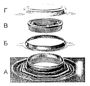 А - фланец горловины; Б - пломбировочное кольцо; В - крышка; Г - колпачок с пломбировочными отверстиями Сборочный чертеж и поперечное сечение горловины бочки Восьмиугольная горловина