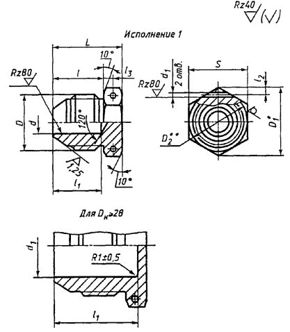 Пример условного обозначения пробки исполнения 1 к трубопроводу Dн = 12 мм из алюминиевого сплава: Пробка 1-12-31А ГОСТ 13973-74 То же, из стали марки 45: Пробка 1-12-22А ГОСТ 13973-74 То же, из стали марки 12Х18Н9Т: Пробка 1-12-13А ГОСТ 13973-74 То же, из стали марки 13Х11Н2В2МФ: Пробка 1-12-11А ГОСТ 13973-74 То же, для изделий общего применения: Пробка 1-12-31 ГОСТ 13973-74 Пробка 1-12-22 ГОСТ 13973-74 Пробка 1-12-13 ГОСТ 13973-74 Пробка 1-12-11 ГОСТ 13973-74 Пример условного обозначения пробки исполнения 2 к трубопроводу D = 12 мм из алюминиевого сплава: Пробка 2-12-31А ГОСТ 13973-74 То же, из стали марки 45: Пробка 2-12-22А ГОСТ 13973-74 То же, из стали марки 12Х18Н9Т: Пробка 2-12-13А ГОСТ 13973-74 Тоже, из стали марки 13X11Н2В2МФ: Пробка 2-12-11А ГОСТ 13973-74 То же, для изделий общего применения: Пробка 2-12-31 ГОСТ 13973-74 Пробка 2-12-22 ГОСТ 13973-74 Пробка 2-12-13 ГОСТ 13973-74 Пробка 2-12-11 ГОСТ 13973-74 3. Резьбовая часть пробок - по ГОСТ 13955-74. 4. Маркировать и клеймить - по ГОСТ 13977-74. 5. Технические условия - по ГОСТ 13977-74. |