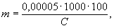 Массу навески стандартного образца цирконового типа (т) в граммах на 1 дм3 стандартного раствора с массовой концентрацией двуокиси кремния 0,00005 г/см3 вычисляют по формуле