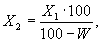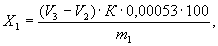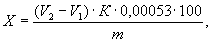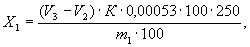 где 250 - общий объем фильтрата после минерализации масел, см3; 100 - аликвотная часть фильтрата, взятая на титрование, см3. Массовую долю серы в безводном нефтепродукте (Х2) в процентах вычисляют по формуле