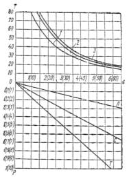 Л, СЛ, С, Т - типы труб; Р - величина допустимого рабочего давления в трубе, МПа (кгс/см2); Т - температура транспортируемой среды, °С; s - величина напряжений в теле трубы, МПа (кгс/см2). Срок службы трубопровода: 1 - 11,4 года; 2 - 15 лет; 3 - 25 лет; 4 - 50 лет. Допустимые значения относительного укорочения вертикального диаметра сечения трубы при расчете на деформацию должны составлять для труб из ПВП и ПНП - 5%, ПП - 4%, ПВХ - 3,5%.