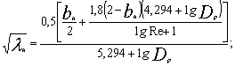 где lн - коэффициент сопротивления трения по длине напорного трубопровода; vср - средняя скорость течения жидкости, м/с; g - ускорение свободного падения, м2/с; Dp - расчетный диаметр трубопровода, м, равный: Dp = 0,5 (2Dн + DDн – 4S – 2DS); Dн - наружный диаметр трубопровода, м; DDн - допуск на наружный диаметр трубопровода, м; S -толщина стенки трубы, м; DS - допуск на толщину стенки трубы, м; bн - число подобия режимов течения жидкости;