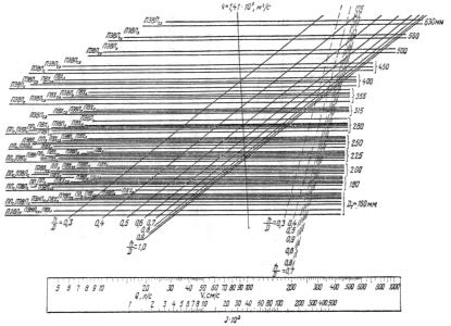 Рис. 8. Номограммы для гидравлического расчета пластмассовых канализационных труб