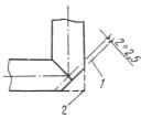 Рис. 23. Отрезка вершин угольника при изготовлении тройников и крестовин 1 - линия реза; 2 - вершина угольника 9.7. Переходные тройники для труб из ПВП, ПНП и ПП изготовляют, приваривая контактной сваркой к горловине (полученной методом формования вытяжкой) ответвление. Ответвление следует приваривать к горловине не раньше чем через 8 ч после ее формования. Указанные переходные тройники применяют при температуре транспортируемой среды не выше 30°С. 9.8. Размеры фасонных частей, изготовляемых контактной стыковой сваркой из труб ПВП, ПНП и ПП, приведены в прил. 11-13. 9.9. Технология изготовления отводов, колен, тройников и крестовин для труб из ПВХ газовой прутковой сваркой включает следующие операции: резку труб на заготовки; подготовку деталей под сварку (аналогично подготовке деталей для металлических труб) с учетом п. 8.22; газовую прутковую сварку. 9.10. Нормативная документация на фасонные части, изготовляемые из труб ПВХ методом газовой прутковой сварки, приведена в прил. 13. 9.11. При отсутствии специальных требований к испытанию сварных фасонных частей режимы их испытания должны соответствовать режимам испытания всего трубопровода. 10. Склеивание труб из ПВХ10.1. Трубы из ПВХ между собой и с фасонными частями должны склеиваться враструб. Длину нахлестки клеевых соединений, а также потребность в материалах для склеивания труб и фасонных деталей из ПВХ (на 100 соединений) следует принимать в соответствии с табл. 17. Таблица 17
