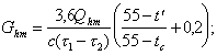 5.3. Суммарные расчетные расходы сетевой воды, кг/ч, в двухтрубных тепловых сетях в открытых и закрытых системах теплоснабжения при качественном регулировании отпуска теплоты следует определять по формуле: Коэффициент k3, учитывающий долю среднего расхода воды на горячее водоснабжение при регулировании по нагрузке отопления, следует принимать по табл.2. При регулировании по совмещенной нагрузке отопления и горячего водоснабжения коэффициент k3 принимается равным 0. Таблица 2