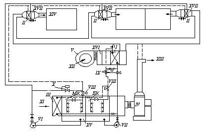 соответственно циркуляционные насосы малого и большого контуров циркуляции; VIII – соленоидные клапаны; IX – взаимообратные