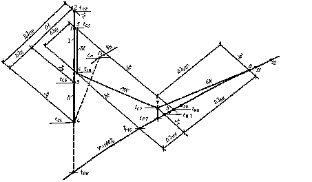Рис. 11. Графическая интерпретация расчетных зависимостей при работе испарительного кондиционера на рециркуляционном воздухе tн – температура наружного воздуха (параметры Б); tc2 – температура воздуха, поступающего в приточный кондиционер; tп – температура рециркуляционного воздуха, поступающего в испарительный кондиционер; tми и tри – температура мокрого термометра и точка росы воздуха, поступающего в испарительный кондиционер; DtcI; DtcII; DtcIII – разности температур соответственно в I, II и III теплообменниках
