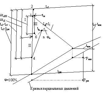 Рис. 12. Графическая интерпретация расчетных зависимостей при работе испарительного кондиционера на наружном воздухе tн –