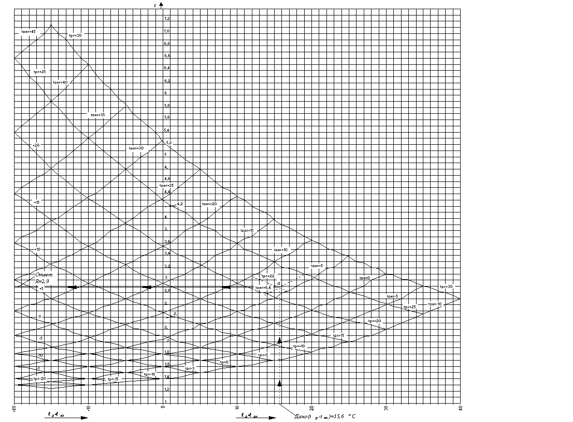 г) критерий R по диаграмме на рис. 14, предварительно определив разность tp – tвн (рис. 9), принимая tp = tри и tвн = t10;