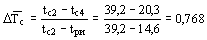 д) для теплообменника II при tc = tc3 и tвн = t9 определяют начальную температуру воды, поступающей в теплообменник II, t9 = tc3 – (tc – tвн) = 23,5 – 6,5 = 17 °С; е) определяют конечную температуру воды после теплообменника II по уравнению (7), если tвн = t9 и tвк = t10,