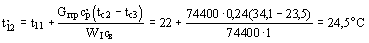 е) определяют величину начальной движущей силы теплообмена (tc – tвн), когда tc = tc2 = 34,1 °С и tвн = t11 = 22°С, (tc – tвн) = 34,1 – 22 = 12,1 °С; ж) определяют величину охлаждения воздуха в теплообменнике I по уравнению (5) DtcI = 0,475×12,10,96×7,2–0,25×0,620,14×4550,3×85,9–0,12 = 10,6 °С з) определяют температуру воздуха после теплообменника I tc3 = tc2 – DtcI = 34,1 – 10,6 = 23,5 °С; и) определяют конечную