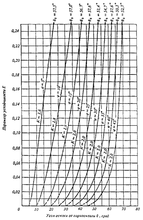 Обозначение, принятое в табл. 3: D - наружный диаметр трубопровода в стыке. Примечание. Для других конструкций стыков и диаметров трубопроводов размеры приямков следует устанавливать в проекте. 3.7. Доработку недоборов до проектной отметки следует производить с сохранением природного сложения грунтов оснований. 3.8. Восполнение переборов в местах устройства фундаментов и укладки трубопроводов должно быть выполнено местным грунтом с уплотнением до плотности грунта естественного сложения основания или малосжимаемым грунтом (модуль деформации не менее 20 МПа). В просадочных грунтах II типа не допускается применение дренирующего грунта. 3.9. Восполнение переборов в планировочных выемках в скальных грунтах допускается выполнять местным скальным грунтом, не содержащим на поверхности кусков размером свыше 5 см. 3.10. Способ восстановления оснований, нарушенных в результате промерзания, затопления, а также переборов глубиной более 50 см, должен быть согласован с проектной организацией. 3.11. Наибольшую крутизну откосов траншей, котлованов и других временных выемок, устраиваемых без крепления в грунтах, находящихся выше уровня подземных вод (с учетом капиллярного поднятия воды по п. 3.12), в том числе в грунтах, осушенных с помощью искусственного водопонижения, следует принимать в соответствии с требованиями СНиП III-4-80. При высоте откосов более 5 м в однородных грунтах их крутизну допускается принимать по графикам рекомендуемого приложения 3, но не круче указанных в СНиП III-4-80 для глубины выемки 5 м и во всех грунтах (включая скальные) не более 80°. Крутизна откосов выемок, разрабатываемых в скальных грунтах с применением взрывных работ, должна быть установлена в проекте. 0,3 м - для крупных, средней крупности и мелких песков 0,5 « - « пылеватых песков и супесей 1,0 « - « суглинков и глин 3.13. Крутизну откосов подводных и обводненных береговых траншей, а также траншей, разрабатываемых на болотах, следует принимать в соответствии с требованиями СНиП III-42-80. 3.14. В проекте должна быть установлена крутизна откосов грунтовых карьеров, резервов и постоянных отвалов после окончания земляных работ в зависимости от направлений рекультивации и способов закрепления поверхности откосов. 3.16. Максимальную глубину выемок с вертикальными незакрепленными стенками следует принимать в соответствии с требованиями СНиП III-4-80. 3.16. Наибольшую высоту вертикальных стенок выемок в мерзлых грунтах, кроме сыпучемерзлых, при среднесуточной температуре воздуха ниже минус 2 °С допускается увеличивать по сравнению с установленной СНиП III-4-80 на величину глубины промерзания грунта, но не более чем до 2 м. 3.17. В проекте должна быть установлена необходимость временного крепления вертикальных стенок траншей и котлованов в зависимости от глубины выемки, вида и состояния грунта, гидрогеологических условий, величины и характера временных нагрузок на бровке и других местных условий. 3.18. Число и размеры уступов и местных углублений в пределах выемки должны быть минимальными и обеспечивать механизированную зачистку основания и технологичность возведения сооружения. Для котлованов под жилые дома число уступов и местных углублений в скальных грунтах не должно превышать трех, в прочих грунтах - пяти. Отношение высоты уступа к его длине устанавливается проектом, но должно быть не менее 