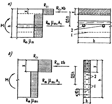 стержневой арматуры на единицу ширины соответственно в сжатой и растянутой