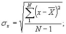 среднеквадратичное отклонение - sх
