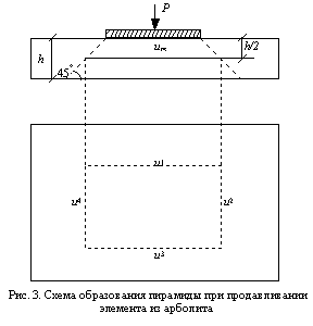 При определении величины um предполагается, что продавливание происходит по боковой поверхности пирамиды, меньшим основанием которой служит площадь действия продавливающей силы, а боковые грани наклонены под углом 45° к горизонтали (см. рис. 3).