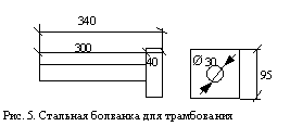 Дробленку дозируют по массе с учетом насыпной плотности отдельных фракций. Расходы воды для затворения арболита принимается из расчета, чтобы В/Ц затворения было равно 1/1. Арболитовую смесь приготовляют путем перемешивания вручную в течение 10 мин или в бетоносмесителе принудительного действия - в течение 5 мин и укладывают в форму кубов размером 10´10´10 см. Формы заполняют арболитовой смесью в два слоя высотой по 5см и уплотняют трамбованием стальной болванкой (рис. 5).