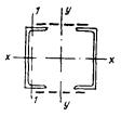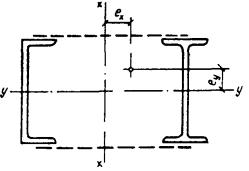 при Численные значения φ приведены в табл. 72. 5.4*. Стержни из одиночных уголков должны рассчитываться на центральное сжатие в соответствии с требованиями, изложенными в п. 5.3. При определении гибкости этих стержней радиус инерции сечения уголка i и расчетную длину lef следует принимать согласно пп. 6.1-6.7. При расчете поясов и элементов решетки пространственных конструкций из одиночных уголков следует выполнять требования п. 15.10* настоящих норм. 5.5. Сжатые элементы со сплошными стенками открытого П-образного сечения при λх < 3λу, где λx и λy - расчетные гибкости элемента в плоскостях, перпендикулярных осям соответственно х-х и y-y (рис. 1), рекомендуется укреплять планками или решеткой, при этом должны быть выполнены требования пп. 5.6 и 5.8*. При отсутствии планок или решетки такие элементы помимо расчета по формуле (7) следует проверять на устойчивость при изгибно-крутильной форме потери устойчивости по формуле