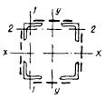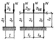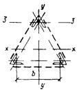 здесь Jb1 и Jb3 - моменты инерции сечения ветвей относительно осей соответственно 1-1 и 3-3 (для сечений типов 1 и 3); Jb1 и Jb2 - то же, двух уголков относительно осей соответственно 1-1 и 2-2 (для сечения типа 2); Js - момент инерции сечения одной планки относительно собственной оси х-х (рис. 3); Js1 и Js2 - моменты инерции сечения одной из планок, лежащих в плоскостях, перпендикулярных осям соответственно 1-1 и 2-2 (для сечения типа 2). 5.6. Для