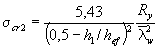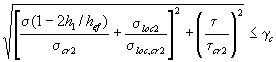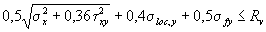 подставлять б) в формулу (88) вместо (0,5 - h1/hef) следует подставлять Здесь где σt - краевое растягивающее напряжение (со знаком «минус») у расчетной границы отсека. В случае развитого растянутого (ненагруженного) пояса расчет на устойчивость при одновременном действии напряжений σ и τ следует производить по формуле (90). 7.10. Стенки