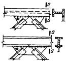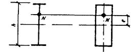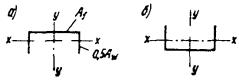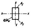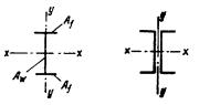где Wcx и Wcv - моменты сопротивления сечений для наиболее сжатого волокна относительно осей соответственно x-x и у-у. Если λх > λу, то кроме расчета по формуле (62) следует произвести дополнительную проверку по формуле (51), принимая еу = 0. В случае несовпадения плоскости наибольшей жесткости (Jx > Jy) с плоскостью симметрии расчетное значение mх следует увеличить на 25 %. Рис. 6. Сквозное сечение стержня из двух сплошностенчатых ветвей 5.35. Расчет на устойчивость сквозных стержней из двух сплошностенчатых ветвей, симметричных относительно оси у-у (рис. 6), с решетками в двух параллельных плоскостях, подверженных сжатию и изгибу в обеих главных плоскостях, следует выполнять: для стержня в целом - в плоскости, параллельной плоскостям решеток, согласно требованиям п. 5.27*, принимая еу = 0; для отдельных ветвей - как внецентренно-сжатых элементов по формулам (51) и (56), при этом продольную силу в каждой ветви следует определять с учетом усилия от момента Мх (см. п. 5.33), а момент Му распределять между ветвями пропорционально их жесткостям (если момент Му действует в плоскости одной из ветвей, то следует считать его полностью передающимся на эту ветвь). Гибкость отдельной ветви следует определять при расчете по формуле (51) согласно требованиям п. 6.13 настоящих норм, при расчете по формуле (56) - по максимальному расстоянию между узлами решетки. 5.36. Расчет соединительных планок или решеток сквозных внецентренно-сжатых стержней следует выполнять согласно требованиям п. 5.9 и 5.10 настоящих норм на поперечную силу, равную большему из двух значений: фактическую поперечную силу Q или условную поперечную силу Qfjc, вычисляемую согласно требованиям п. 5.8* настоящих норм. В случае, когда фактическая поперечная сила больше условной, соединять планками ветви сквозных внецентренно-сжатых элементов, как правило, не следует. ОПОРНЫЕ ЧАСТИ5.37. Неподвижные шарнирные опоры с центрирующими прокладками, тангенциальные, а при весьма больших реакциях - балансирные опоры следует применять при необходимости строго равномерного распределения давления под опорой. Плоские или катковые подвижные опоры следует применять в случаях, когда нижележащая конструкция должна быть разгружена от горизонтальных усилий, возникающих при неподвижном опирании балки или фермы. Коэффициент трения в плоских подвижных опорах принимается равным 0,3, в катковых - 0,03. 5.38. Расчет на смятие в цилиндрических шарнирах (цапфах) балансирных опор следует выполнять (при центральном угле касания поверхностей, равном или большем π/2) по формуле