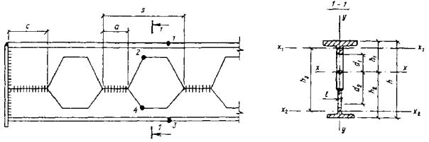 которого следует принимать 19.6. При определении прогиба балок с отношением l / hef ≥ 12 (где l - пролет балки) момент инерции сечения балки с отверстием следует умножать на коэффициент 0,95. Рис. 23. Схема участка балки с перфорированной стенкой Таблица 49
