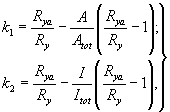 где Ry - расчетное сопротивление основного металла, определяемое согласно требованиям п. 20.1; k1, k2 - коэффициенты, вычисляемые по формулам: