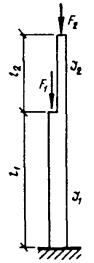 в зависимости от отношения Рис. 24. Схема одноступенчатой колонны при верхнем конце, свободном от всяких закреплений, - по табл. 67; при верхнем конце, закрепленном от поворота, и при возможности его свободного смещения - по табл. 68. При неподвижном верхнем конце, шарнирно-опертом или закрепленном от поворота, значения коэффициента μ1 для нижнего участка колонны следует определять по формуле