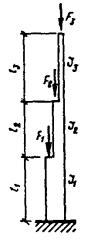 где μm1, μm2, μm3 - коэффициенты, определяемые по табл. 71 как для одноступенчатых колонн по схемам рис. 26; β1 = F1 / F3; β2 = F2 / F3; δ2 = l2 / l1; F1, F2, F3 - продольные силы, приложенные соответственно в местах образования ступеней и к верху колонны; J1m - среднее значение момента инерции для участков l1 и l2, определяемое по формуле