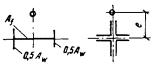 hеf / 24 + 50 мм; толщина ребра ts должна быть не менее Стенки балок допускается укреплять односторонними поперечными ребрами жесткости из одиночных уголков, привариваемых к стенке пером. Момент инерции такого ребра, вычисляемый относительно оси, совпадающей с ближайшей к ребру гранью стенки, должен быть не меньше, чем для парного симметричного ребра. 7.11. При укреплении стенки одним продольным ребром необходимые моменты инерции Js сечений ребер жесткости следует определять: для поперечных ребер - по формуле Js = 3heft3; (89) для продольного ребра - по формулам табл. 21 с учетом его предельных значений. При расположении продольного и поперечных ребер с одной стороны стенки моменты инерции сечений каждого из них вычисляются относительно оси, совпадающей с ближайшей к ребру гранью стенки. Таблица 26