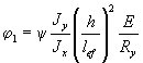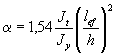 где здесь J1 и J2 - моменты инерции соответственно большего и меньшего поясов относительно оси симметрии сечения; α - следует определять
