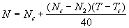 где N-искомая величина монтажного натяжения при температуре воздуха во время производства работ; N1-величина натяжения при плюс 40° С к среднегодовой температуре, приводится в чертежах КМ; N2-величина натяжения при минус 40° С от среднегодовой температуры, приводится в чертежах КМ; Nc-величина натяжения при среднегодовой температуре воздуха в районе установки мачты, приводится в чертежах КМ в графе условной температуры для t°=0; Тc-среднегодовая температура воздуха в районе установки мачты, определяется по данным гидрометеорологической службы, в чертежах КМ обозначена t°=0; Т-температура воздуха во время производства работ по регулированию натяжения оттяжек мачт. Примечание к формулам: Значения температур в формулах применять с их знаками «+» или «-».
