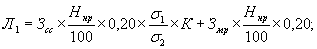 где: Л1 - лимит средств для возмещения накладных расходов в рублях; Л2 - лимит средств для возмещения накладных расходов в иностранной валюте, пересчитанной в рубли; Зсс - заработная плата российских рабочих в иностранной валюте, пересчитанной в рубли; Змр - заработная плата местных рабочих в валюте страны строительства, пересчитанной в рубли; Ннр - норма накладных расходов в процентах; 0,20 и 0,80 - показатели соотношения нормы накладных расходов в рублях и в иностранной валюте;