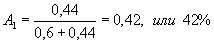 где А и В - доля участия, соответственно российских и местных рабочих в соотношении по конечной численности; А1 и В1- тоже по расчетной численности; К - коэффициент изменения количества трудовых затрат местных рабочих. Принимая В1 = (1-А1) и подставляя значения А и В (А = 0,4 и В = 0,6) и К (К = 1,10), получаем для данного примера: 0,6А1=0,40 ´ 1,10 (1 – А1); 0,6А1+ 0,44А1= 0,44; А1 (0,6 + 0,44) = 0,44;