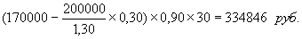 нормативный лимит трудовых затрат составляет 6. Расчетная величина для определения стоимости запасных частей и ремонтных материалов в ценах, введенных с 1 января 1982 г., для определения расходов в смете в смешанных ценах пересчитывается с учетом следующего: а) исключаются накладные расходы и плановые накопления ремонтной организации в установленном для нее размере в процентах к сумме прямых затрат в составе общей суммы амортизационных отчислений на капитальный ремонт (для данного примера расчета размер накладных расходов и плановых накоплений условно принят 30 процентов); б) к остатку применяются следующие коэффициенты: на переход к оптовым ценам, введенным с 1 января 1982 г. (исключаются транспортные расходы, стоимость погрузочно-разгрузочных работ и заготовительно-складские расходы) - 0,90; на переход от оптовых цен 1982 г. к оптовым ценам по прейскурантам, утвержденным во исполнение постановления Совета Министров СССР от 14 июня 1988 г. №741, - в размерах, определенных по Сборнику индексов оптовых цен (тарифов), изданному Государственным комитетом СССР по ценам в 1989 году; на переход от оптовых цен по прейскурантам, утвержденным во исполнение постановления Совета Министров СССР от 14 июня 1988 г. № 741, с коэффициентами к ним, установленными органами ценообразования к отпускным ценам на момент составления сметной документации – в размерах, согласованных генеральным подрядчиком с российским заказчиком (см. пункт 3.4 настоящего Порядка). В данном примере расчета коэффициент перехода от оптовых цен 1982 г. к отпускным ценам на момент составления сметной документации условно принят в размере 30 и, исходя из этого, стоимость запасных частей и ремонтных материалов (в отпускных ценах на момент составления сметной документации) определена в размере: