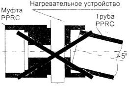 После каждой сварки необходима очистка рабочих поверхностей дорна и гильзы нагревательного устройства от налипшего материала. 5.4. Время технологических операций сварки приведено в табл. 5.2 (при температуре наружного воздуха +20 °С). 5.5. При выполнении технологической операции «нагрев» не допускается отклонение осевой линии трубы от осевой линии нагревательного устройства более чем на 5 град. (рис. 5.2). Для диаметров труб более 32 мм, в случае если длина участка трубы более 2 м, необходимо использовать дополнительные подставки, обеспечивающие соосность трубы и нагревательного устройства. Рис. 5.2 5.6. Во время охлаждения запрещается производить любые механические воздействия на трубу или соединительную деталь после сопряжения их оплавленных поверхностей с целью более точной установки. 5.7. Внешний вид сварных соединений должен удовлетворять следующим требованиям: - отклонение между осевыми линиями трубы и соединительной детали в месте стыка не должно превышать 5°; - наружная поверхность соединительной детали, сваренной с трубой, не должна иметь трещин, складок или других дефектов, вызванных перегревом деталей; - у кромки раструба соединительной детали, сваренной с трубой, должен быть виден сплошной (по всей окружности) валик оплавленного материала, слегка выступающий за торцевую поверхность соединительной детали. 5.8. Контактную сварку полипропиленовых труб и деталей трубопровода следует проводить при температуре окружающей среды не ниже 0 °С. Место сварки следует защищать от атмосферных осадков и пыли. 5.9. Соединение на свободных фланцах (рис. 5.3) осуществляется с помощью втулок с буртом (прил. 3), привариваемых контактной сваркой на концы труб, и установкой на них свободно вращающихся фланцев. Рис. 5.3. Соединение труб из PPRC на свободных фланцах 1 - втулка с буртом; 2 - фланец; 3 - шайба металлическая; 4 - болт металлический; 5 - прокладка; 6 - сварной шов 5.10. При сварке труб PPRC диаметром более 40 мм следует использовать центрирующие приспособления. 5.11. Для получения разъемных соединений труб из PPRC с металлическими трубами или арматурой применяют соединение с накидной гайкой (рис. 5.4). Рис. 5.4. Соединение с накидной гайкой 1 - труба из PPRC; 2 - деталь из PPRC; 3 - накидная гайка металлическая; 4 - резьбовая деталь; 5 - прокладка; 6 - сварной шов 5.12. Деталь 2 приваривается к трубе из PPRC контактной раструбной сваркой (пункт 5.2 и 5.3). 5.13. При соединении металлических труб с резьбовыми соединительными деталями из PPRC уплотнение осуществляется фторопластовой лентой (ФУМ) или другим уплотнительным материалом. 6. Испытание трубопроводов6.1. Испытание трубопровода следует производить при положительной температуре и не ранее, чем через 16 ч после сварки последнего соединения. 6.2. Расчетное давление в трубопроводе и время испытания следует назначать согласно СНиП 3.05.01-85. 6.3. По окончании испытаний производится промывка трубопровода водой в течение 3 ч. 7. Требования по технике безопасности7.1. При контакте с открытым огнем материал труб горит коптящим пламенем с образованием расплава и выделением углекислого газа, паров воды, непредельных углеводородов и газообразных продуктов. 7.2. Сварку трубосоединительных деталей следует производить в проветриваемом помещении. 7.3. При работе со сварочным аппаратом следует соблюдать правила работы с электроинструментом. 8. Нормативные 